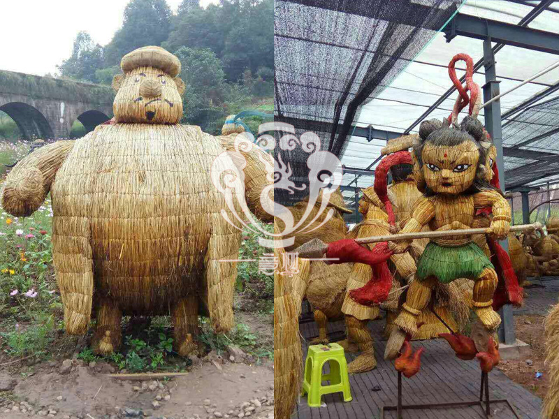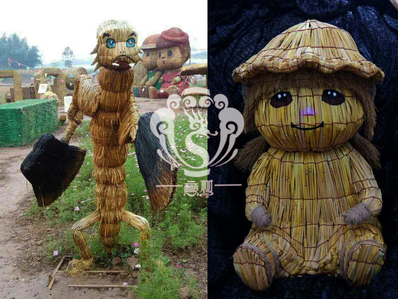 稻草人藝術,不僅充分利用的稻草秸稈制作出各種有趣的形象,與此同時還能減少秸稈的焚燒,為我們的藍天白云,子孫后代做一份貢獻!現(xiàn)在的精致稻草人藝術通常是由專業(yè)美術老師的造型放樣,然后由焊工師傅焊接出立體造型造型,然后以稻草或者稻草繩為材料編捆制作而成。