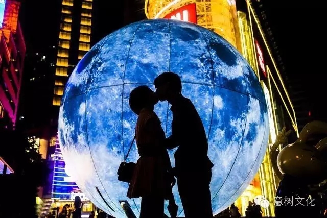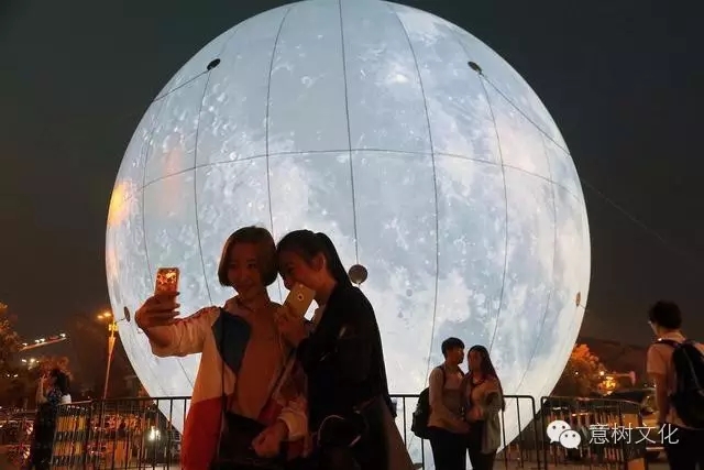 2015年9月15日晚,廣州市天河區(qū)維多利廣場外的“大月亮”露臉,這個“超級大月亮”高約兩層樓,采用超薄環(huán)保材料打造而成。入夜后,“月球”發(fā)出潔白光芒。創(chuàng)意團隊與美院學子聯(lián)合締造互動裝置藝術(shù),可愛的Q版兔子背著火箭筒作登月狀,留給市民扮演嫦娥、吳剛,又是一個自拍過節(jié)的好去處。據(jù)了解,類似的裝置藝術(shù)展還可以在廣州西城都薈與花城廣場找到。