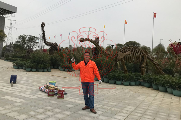 公司員工紀念玻璃鋼恐龍骨架安裝完成
