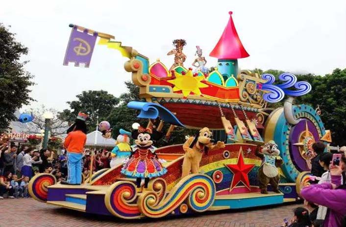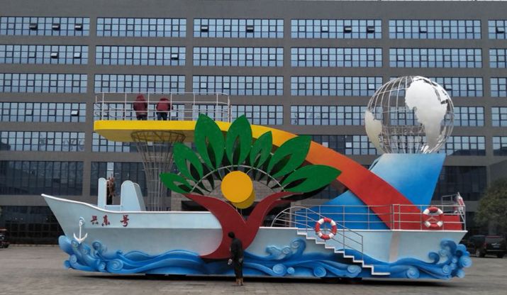 《歡樂(lè)彩虹船》長(zhǎng)15米高7米寬6米玻璃鋼彩繪花車。此花車展現(xiàn)出一片在小船上狂歡的氛圍,與們園區(qū)的游玩設(shè)施相照應(yīng),配合ip人偶演員熱情的互動(dòng),使游客感覺(jué)猶如與我們的演員一起在這條彩虹船上盡情的歡樂(lè)。