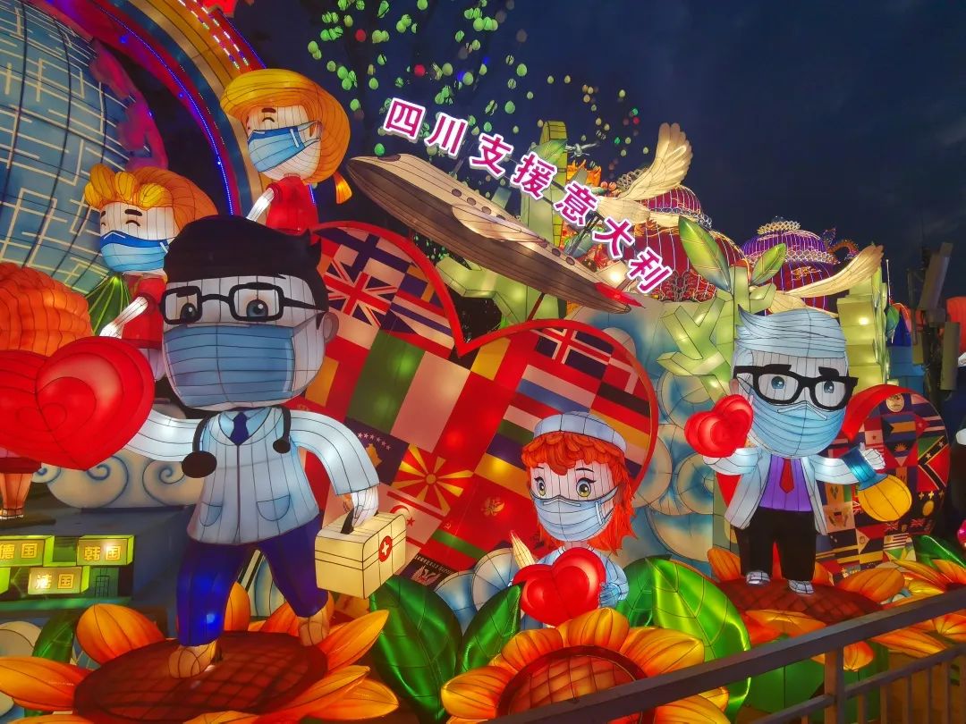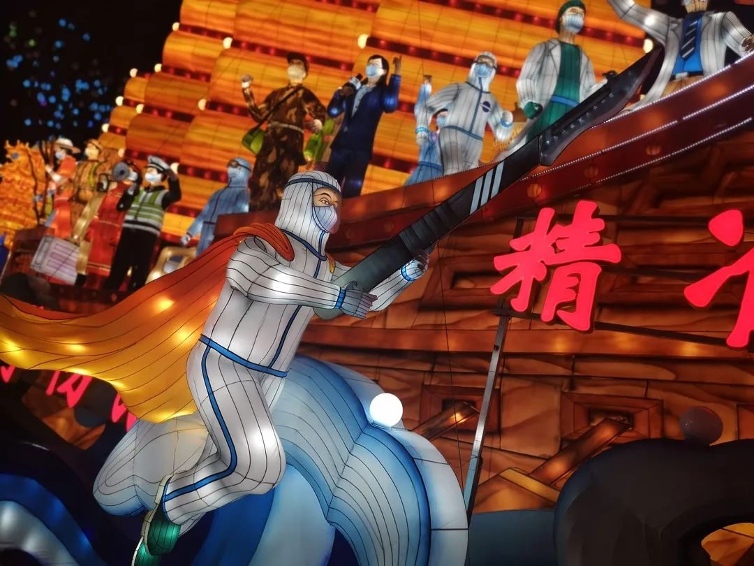 此次燈會(huì)以“春回大地、燈耀世界”為主題,是全國(guó)首個(gè)抗疫主題燈會(huì),自貢燈會(huì)用精心創(chuàng)作的一組組彩燈還原了抗疫一線的“戰(zhàn)士們”的大無(wú)畏精神。