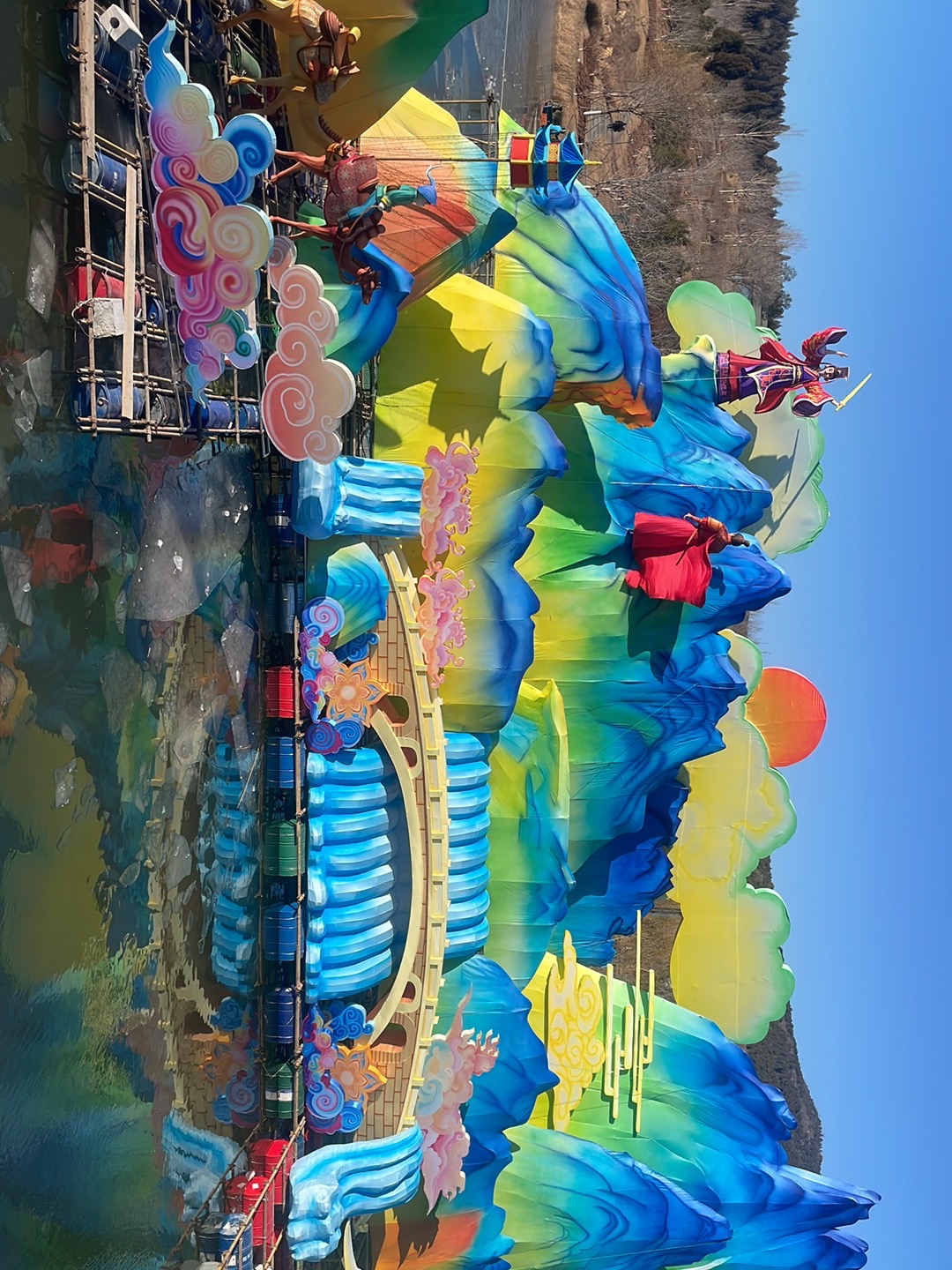燈展現(xiàn)場,千燈萬盞與龍馬湖的山、水、橋景相映成趣,構(gòu)筑成一幅絕美的新春光影畫卷。高達十二米的“富貴平安”燈組喜慶洋溢,五顏六色的牡丹花團錦簇,成為全場焦點;