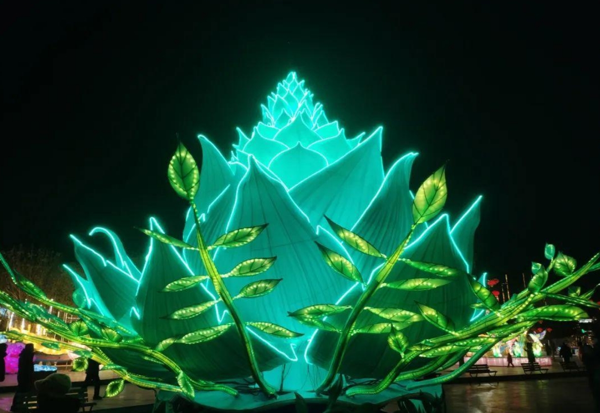 大型燈組“龍騰盛世”,創(chuàng)意源于朝陽三燕龍城宮城南門遺址,城門兩側(cè)設(shè)置雙龍騰躍的龍年主題造型,寓意龍騰盛世的繁華景象,體現(xiàn)朝陽作為三燕古都的厚重歷史?!敖鸩綋u”主題燈組,創(chuàng)意源于三燕時期的精美文物—花樹狀金步搖,這是當(dāng)時慕容鮮卑佩戴的一種特有裝飾物,是古代絲綢之路東傳的實物例證,具有鮮明的北方民族特色文化。“宮燈柱”燈組裝飾在廊道兩側(cè),打造出穿越三燕龍城的時光隧道,彰顯朝陽三燕時期龍城盛世的景象。大型燈組“紅山女神”,是以在朝陽牛河梁遺址出土的紅山女神復(fù)原雕塑為創(chuàng)意創(chuàng)作,讓市民游客在觀燈的同時還能深入了解朝陽作為“文明發(fā)端地、古國牛河梁”的悠久歷史。大型燈組“世界上第一只鳥”“世界上第一朵花”,是以中華龍鳥、遼寧古果造型為主題創(chuàng)作,讓廣大游客感受朝陽古生物化石的神奇與魅力。大型燈組“鳳鳴朝陽”,創(chuàng)意源于《詩經(jīng)·大雅·卷阿》的典故,展現(xiàn)雍容祥和景象。