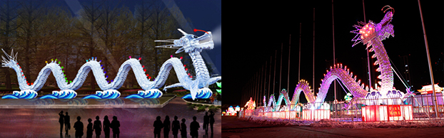 本屆花燈展將融傳統(tǒng)的制燈工藝與現(xiàn)代科學技術于一體,通過LED電腦芯片程序控制燈光動感,聲效芯片控制,動作芯片控制情節(jié)動作等,80余組大型燈組,規(guī)模宏大、氣勢恢宏,把太原多姿多彩的城市風情、民俗風物,經(jīng)花燈特有藝術手法和高科技手段精準獨到鋪陳,靈動細膩的再現(xiàn),惟妙惟肖的演繹給了觀眾。眾多花燈中最亮眼的還數(shù)名為“祥和龍城”的“燈王”,占地近2500平米,高20余米,行人可在花燈下自在穿梭,可謂“燈樓高百尺、手可摘星斗”;室內(nèi)6號展館的100多件仿真恐龍,把游客仿佛帶回到了“侏羅紀”時代,其間的動感6D電影讓大家在各種驚險、刺激的環(huán)境里親身體驗了讓血液沸騰、讓心臟尖叫、讓細胞歡呼的真實感,深受歡迎。