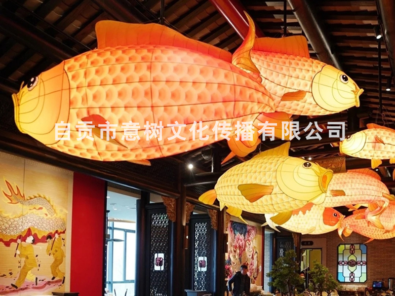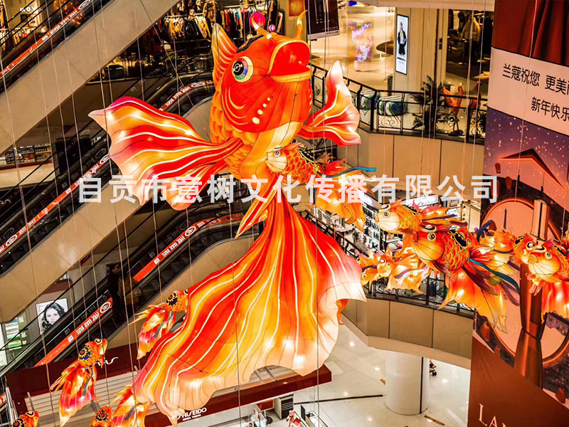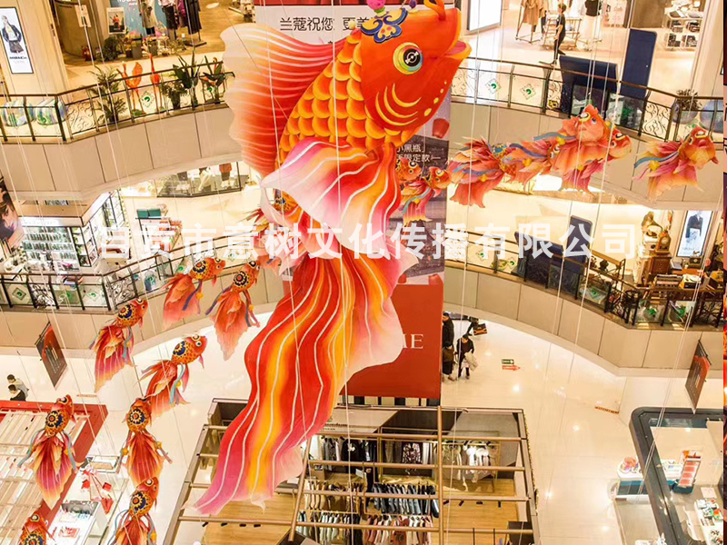 自貢市意樹文化傳播有限公司,采用獨(dú)特的絲藝造型,在形態(tài)上變化多變。經(jīng)過一個(gè)月工人的努力,為重慶某個(gè)大型商場(chǎng)制作的中庭魚燈終于安裝落地完成,深深的受到商場(chǎng)領(lǐng)導(dǎo)的稱贊,也得到了商場(chǎng)顧客的立足觀賞、點(diǎn)贊。